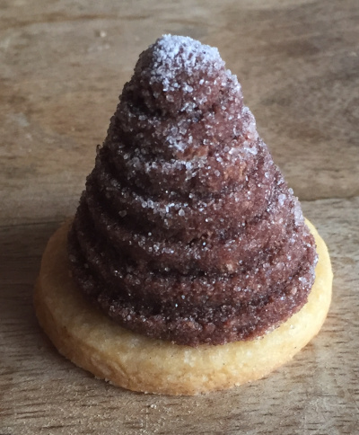 Aus der Masse c.a. 2-3 cm grosse Kugeln nehmen, diese dann spitz ausformen und in Zucker wälzen.